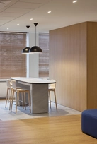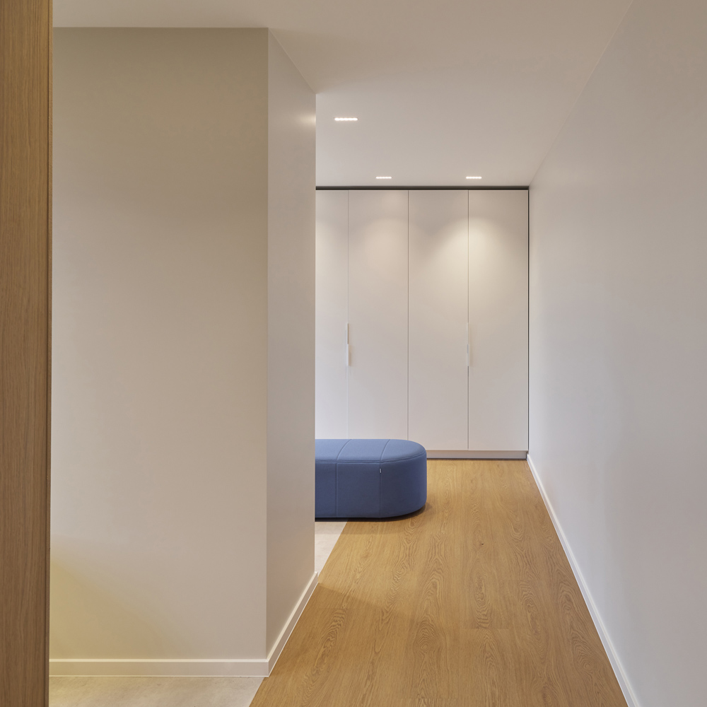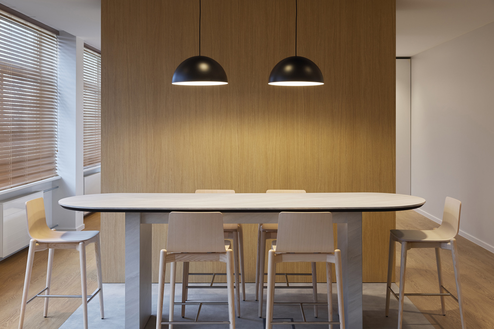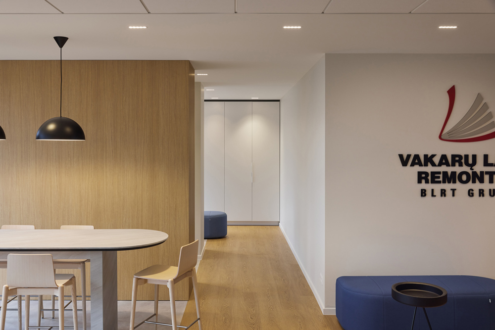Reprezentacinėje erdvėje paslėpta virtuvėlė ir drabužinė, o svečiams matoma tik švari, aiški erdvė su pasitikimo baro tipo stalu, pritaikytu neformaliems pokalbiams ir pasitarimams.