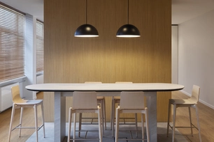 Atskira erdvė skirta reprezentacijai ir svečių priėmimui. Ji nuo bendros darbo zonos atskirta stiklinėmis stumdomomis durimis, leidžiančiomis išlaikyti vizualinį ryšį, tačiau užtikrinti reikiamą privatumą. Atsižvelgiant į industrinę aplinką ir stiprų vizualinį kontekstą už langų, interjere siekta sukurti jaukią, šiltą ir neapkrautą atmosferą – tokią, kuri papildytų, o ne konkuruotų su aplinka.