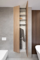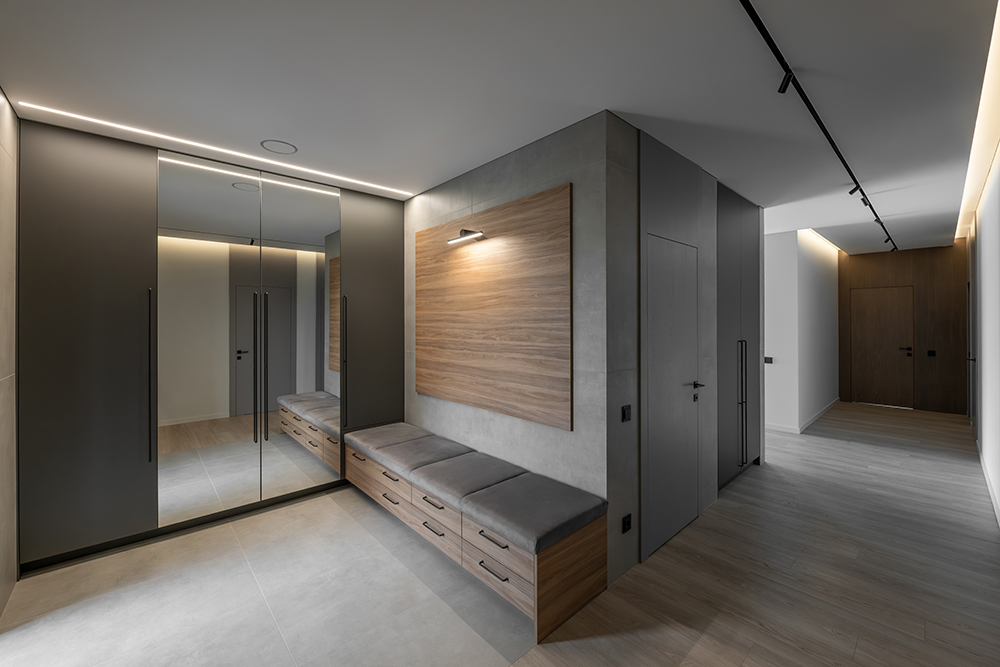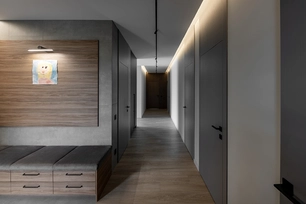 Svarbi dalis projekte – palikta erdvė individualumui. Koridoriuje įrengti bėgeliai paveikslams, ant kurių laikui bėgant bus kabinami meno kūriniai. Tambūre suplanuota konkreti vieta meno kūriniui, kurį kol kas pakeitė mažosios šeimos narės piešinys – mažas, bet reikšmingas akcentas, atspindintis asmeniškumą ir estetinės pajautos ugdymą nuo pat mažumės.