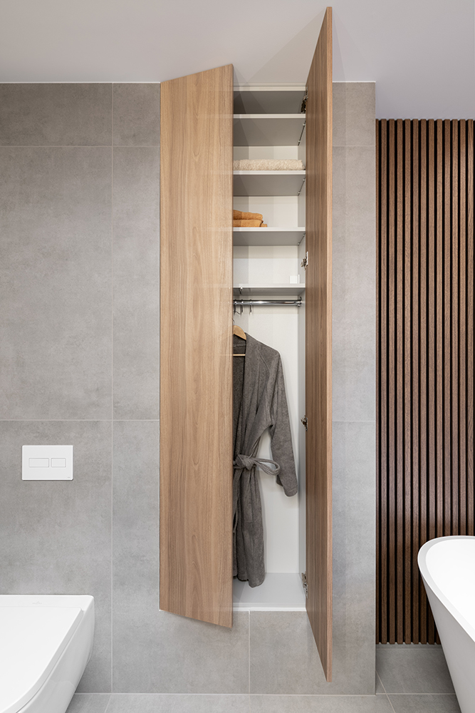 An important aspect of the project was leaving space for individuality. Rails for artwork were installed in the corridor, where art pieces will be displayed over time. In the entryway, a dedicated spot was designed for a piece of art – currently replaced by a drawing made by family’s youngest member. A small but meaningful accent reflecting personal touch and the cultivation of aesthetic sensitivity.