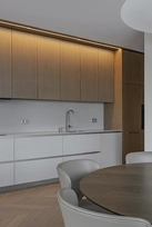Despite a significant amount of bespoke cabinetry, the furniture does not become dominant therefore the feeling of spaciousness is preserved.