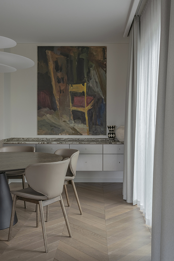 Artworks serve as the final brushstroke, fulfilling the vision of the home and elevating the interior to a level where function remains in the shadows, allowing human stories to take center stage.