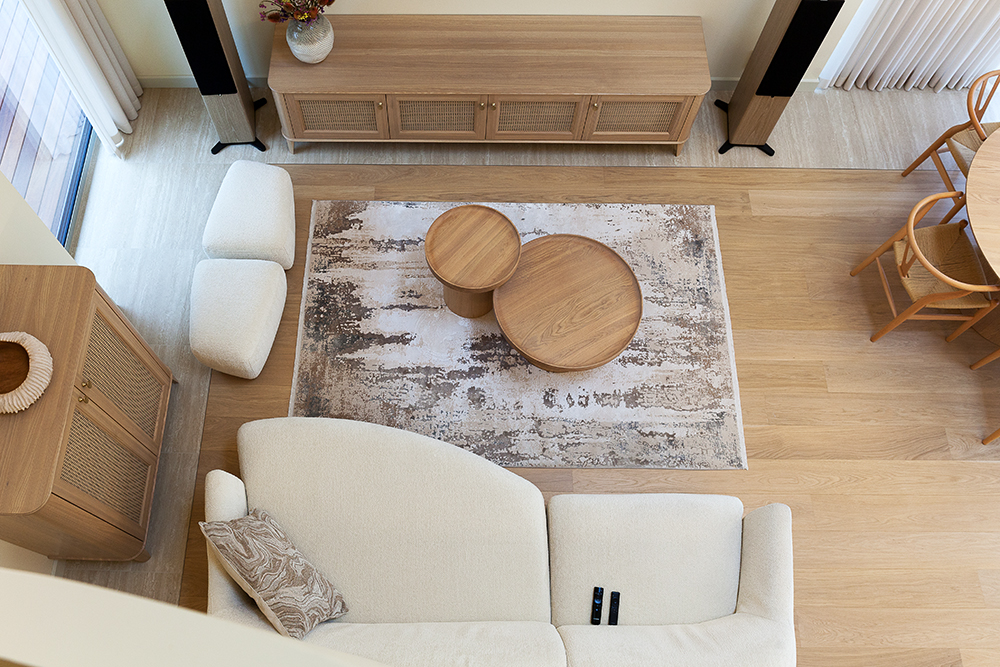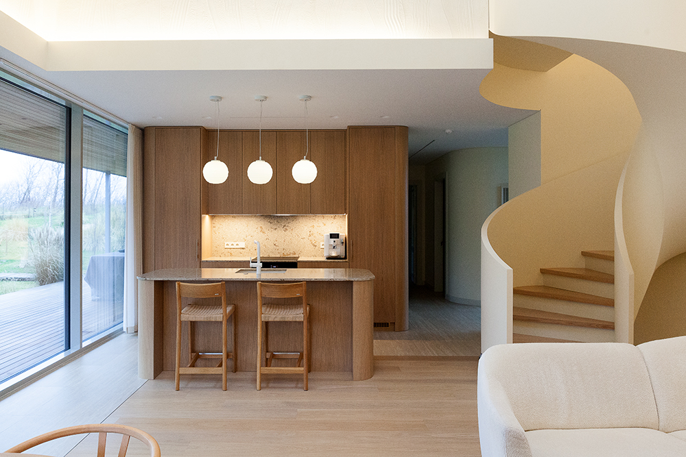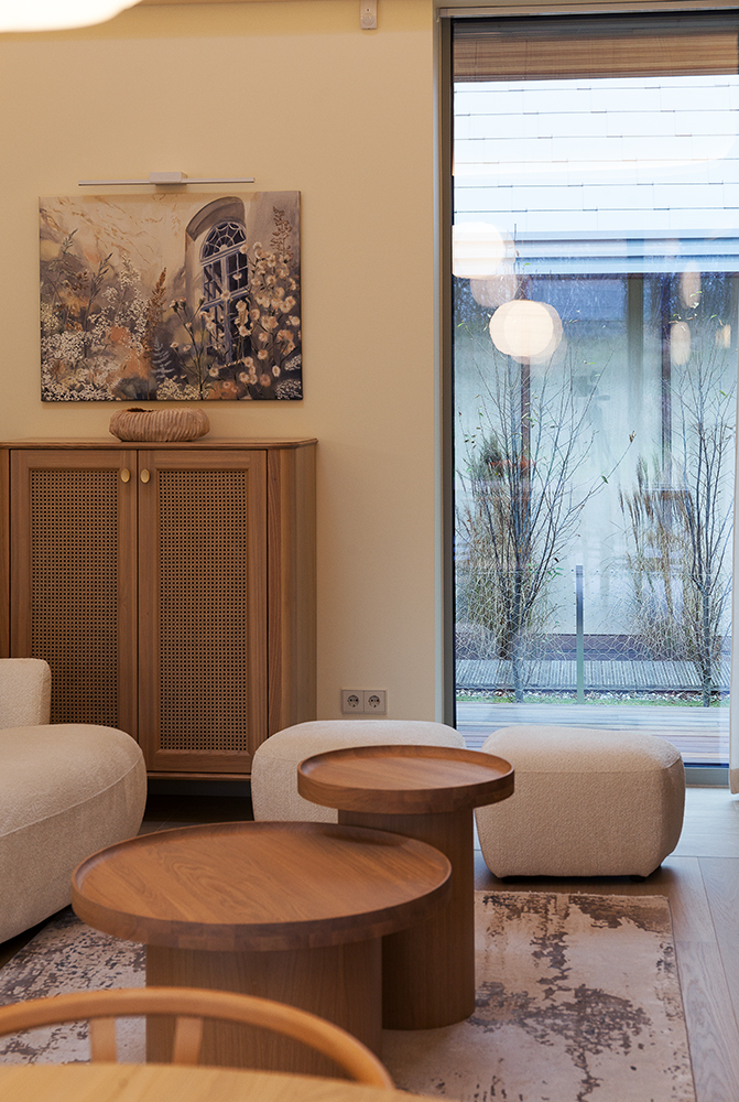 Villa “Pienė” is a family home located by the Baltic Sea. Why Pienė (Dandelion)? Because of the prevailing warm yellow tones, lightness, and elegance. The interior style is Japandi, combining Japanese and Scandinavian design aesthetics.