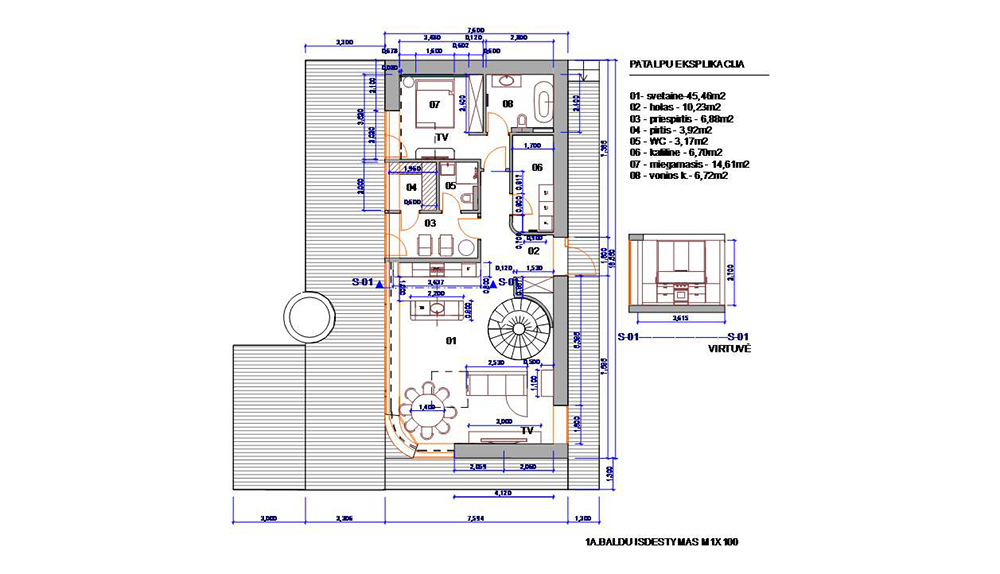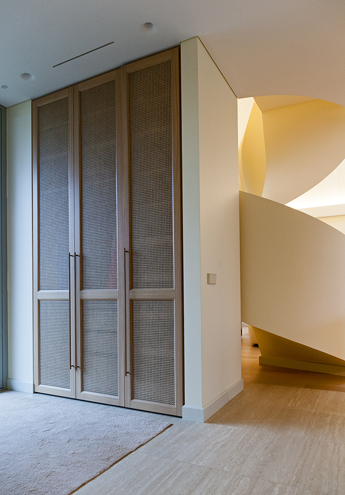 Almost all furniture was custom-made by Lithuanian craftsmen according to my designs, with rattan used as a decorative element. Villa “Pienė” is equipped with the latest ceiling cooling, ventilation, heating, and security technologies, and also features solar panels.
