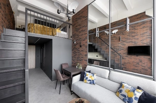 Vilniaus Žirmūnų mikrorajono šurmulingoje vietoje įrengtas loftas nuomai. Labai mažoje erdvėje sutalpinta visa ko reikia kasdieniam gyvenimui: virtuvė, pietų vieta, svetainės erdvė, vonios kambarys ir skalbyklė, miegamasis su darbo stalu ir talpia spinta. Pro panoraminius langus į vidų organiškai įsilieja naturali šviesa, alsuojanti miesto metų laikais ir išplėsdama gyvenimą realiai nedideliame plote.
