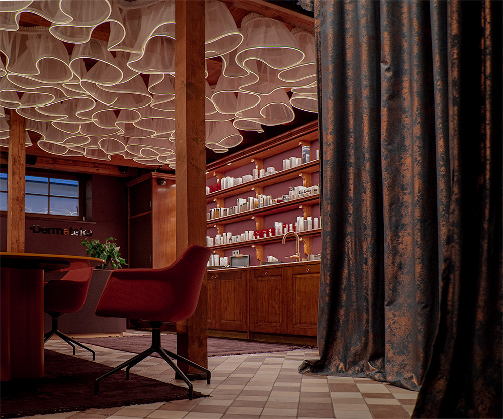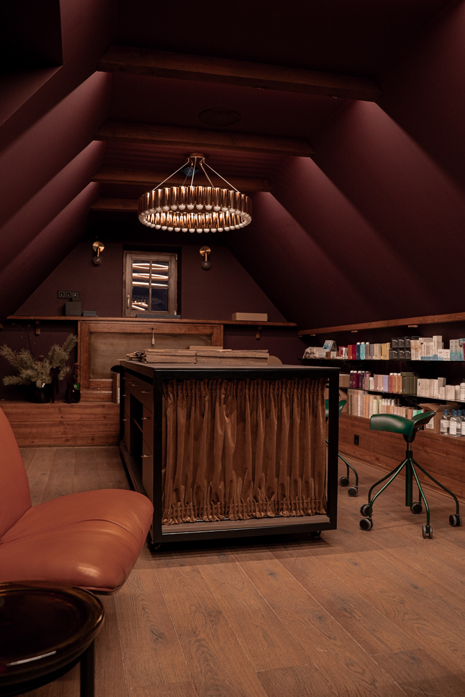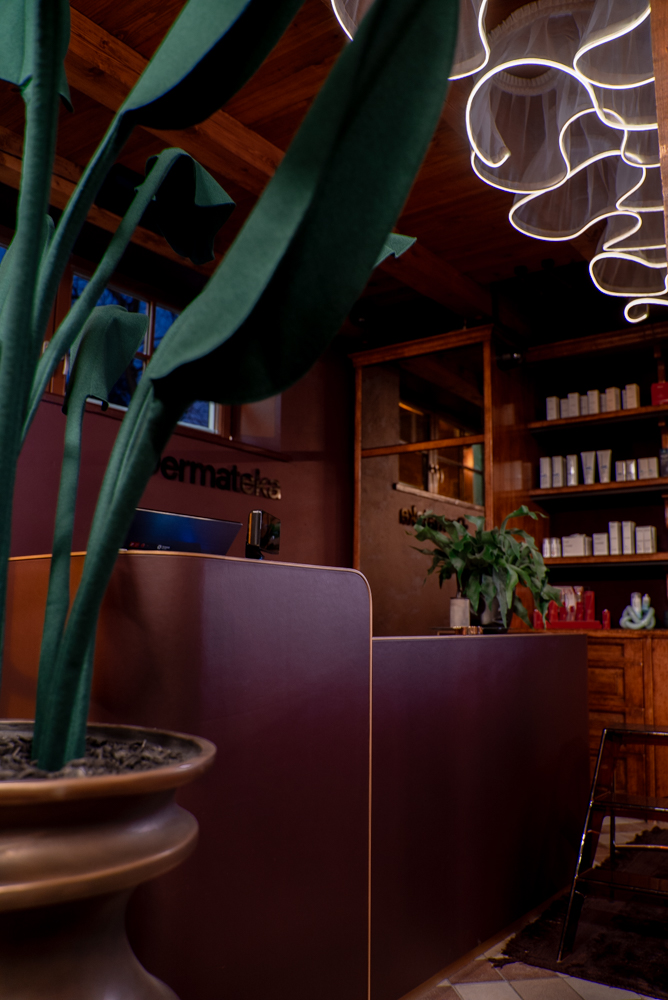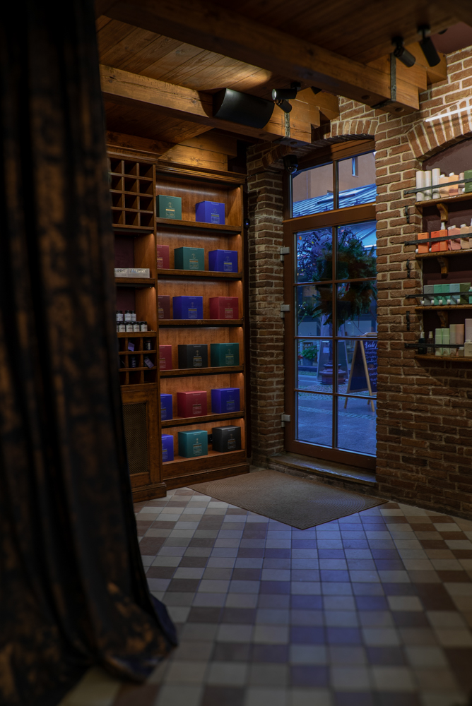 Tarsi senų laikų vaistinėje čia susilieja paslaptys, preciziškumas ir ramybė. Kuriamas laisvos erdvės pojūtis, labiau primenantis svetainę, o gal susitikimų erdvę, norą užsibūti, leisti tyrinėti tiek interjerą tiek pačias priemones. Išskirtinė recepcija: natūralios odos, žalvario ir marmuro derinys primena rankų darbo vertę ir tampa ilgaamžiu kūriniu.